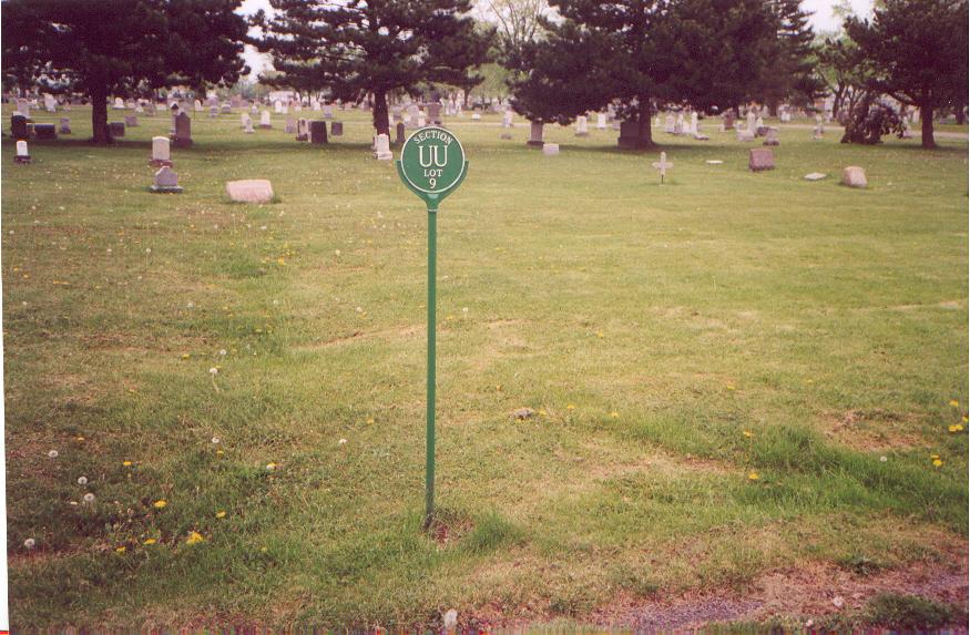 In this small area lies the unmarked grave of Anna Juliana Schwert, Lot 5, Section UU, Line 6, Grave 5, United German & French Cemetery (Pine Hill), Cheektowaga, NY. A map to this gravesite is available here.