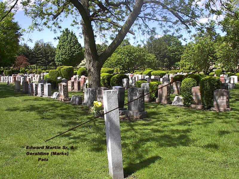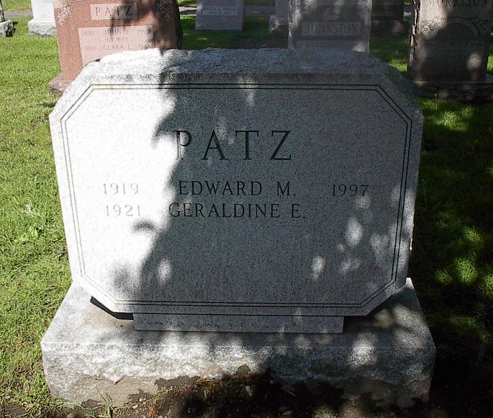 | Grave of Edward Martin Patz, Sr., Woodlawn Cemetery, Everett, Massachusetts. Note grave of Edward's parents to the distant left.