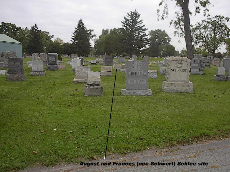 General location of the gravesites of Francisca (née Schwertfeger/Schwert) and August Schlia/Schlee, Lot 112, Sec. 8C, United German & French Cemetery, Cheektowaga, NY. A map to the gravesite is available here.