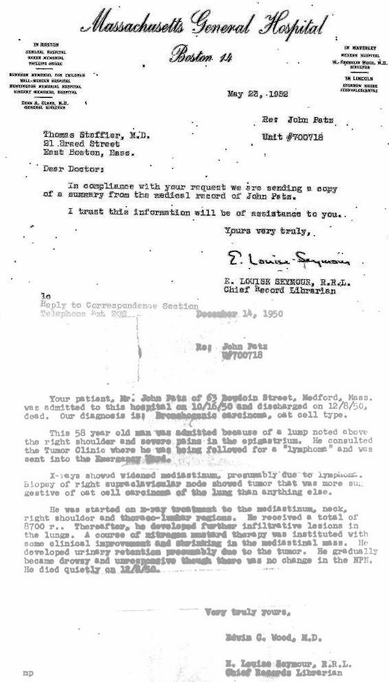 John worked as a "brickie" for Edison in South Boston, repairing the big boilers with the old yellow firebrick. My father, Edward, worked with him for several years, then went freelance after John died. Edward was always afraid that the brick dust at Edison had contributed to John's death.