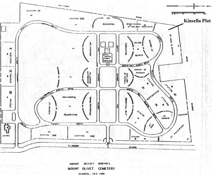 General location of the gravesites for Marie (née Schwert) Kinsella and John E. Kinsella, Plot 243, St. Anne de Beaupre section, Mount Olivet Cemetery, Elmwood Avenue, Kenmore, NY. A map to locate the gravesites is available here.