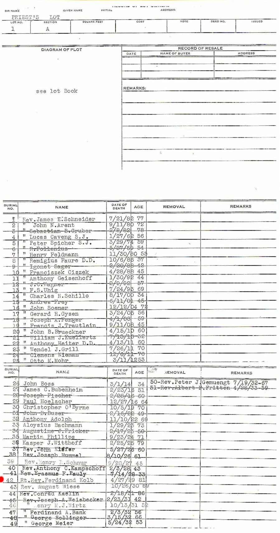 Rev. Msgr. Ferdinand J. Kolb Saint Boniface R.C. Church Buffalo, New York (1884 - 1929) Born: 17 October, 1847, Erfeld, Baden-Württemberg, Germany